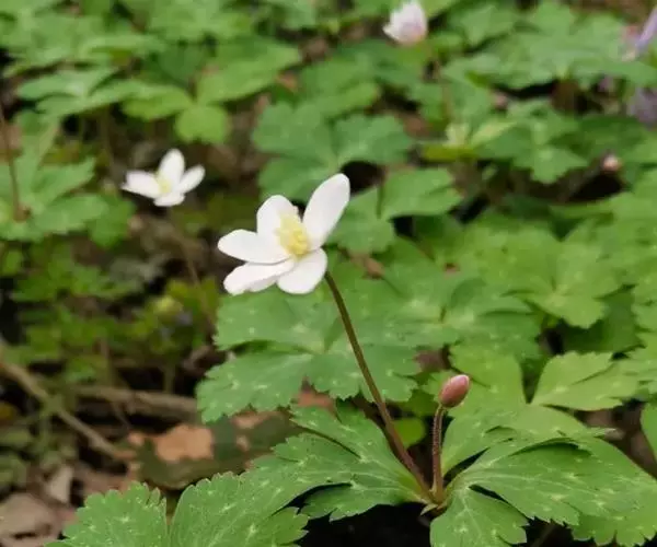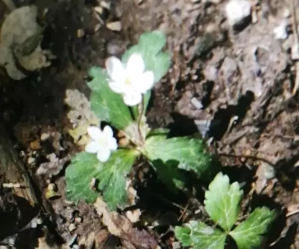 与鹅掌草的区别:叶片较厚,草质,脉在背面隆起;花序有(4-) 5-6花;苞片深裂,裂片多少细裂。植株常较高大,高达63厘米;基生叶长达6.2厘米,宽达12厘米。叶柄和花葶只在上部疏被短柔毛。分布于湖南西北部(桑植)、湖北西南部(恩施、合丰)、四川东部(奉节)。生海拔1200-1400米间山地沟边或草坡。