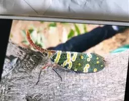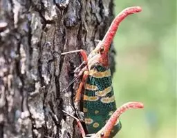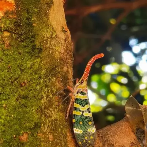 龙眼鸡是同翅目蜡蝉科蜡蝉属昆虫,又名龙眼蜡蝉、黄虫,长鼻子。体色艳丽;头额延伸如长鼻,额突背面红褐色,…