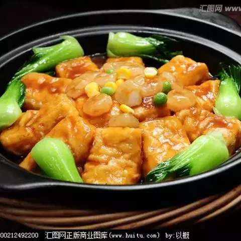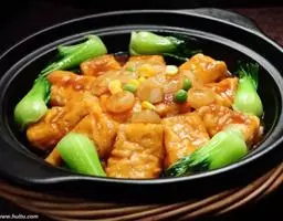 豆腐煲是一道美味可口的名肴,属于粤菜系。主料:北豆腐、蟹味菇、瑶柱、鲜茶树菇