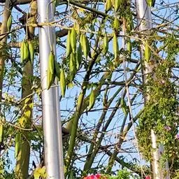 蒴果长圆柱形,长约4厘米,直径约1厘米。花期全年。