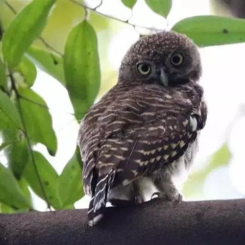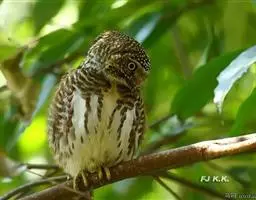 横斑腹小鸮:是鸱鸮科、小鸮属的一种鸟类。体长20厘米左右。面盘不明显,没有耳羽簇,皱领也不显著。…