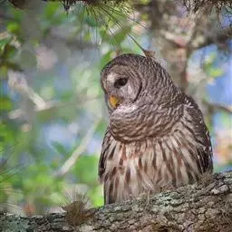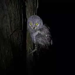 灰林鸮是鸱鸮科、林鸮属鸟类。体长约40厘米;头大而圆,没有耳羽,面盘明显,橙棕色或黑褐色;上体暗灰色,…