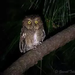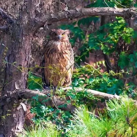 黄嘴角鸮:小型鸟类,体长18-21厘米。的茶黄褐色角鸮。眼黄色,嘴奶油色,特征为无明显的纵纹或横斑,…