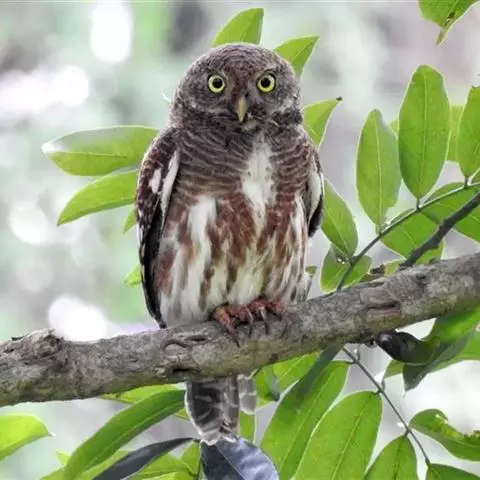 鬼鸮是鸟纲鸱鸮科的鸟类, 全长23-26厘米。共有6个亚种。雌雄羽色相同。额、头顶及枕部褐色,…