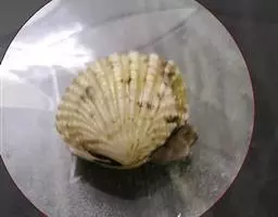 海湾扇贝(学名:Argopecten irradians)是扇贝科、海湾扇贝属贝类。贝壳中等大小,壳质较薄,但很坚韧,呈圆形。壳较凸,两壳及壳两侧均略等,壳背缘较直,腹缘及前、后缘均呈圆形。两壳关闭时两侧略留有狭孔。壳顶尖、低,不突出壳背缘。壳顶前方和后方有壳耳左壳两耳略等右壳前耳略较后耳小。壳表多呈灰褐色或浅黄褐色,具深褐色或紫褐色云状花斑,一般左壳的颜色较浅而右壳较深。两壳面皆布满放射肋肋呈圆形,较光滑,约有18条左右,肋上的生长小棘较低平左壳肋较窄,肋间距离较宽右壳相反,肋较宽而肋间距离较窄。贝壳内面色浅,略近白色,稍具光泽闭壳肌痕略显,近圆形有与壳面相应的肋与沟。铰合部较细长,韧带深褐色,位于三角形的韧带槽中,中央关节较明显。