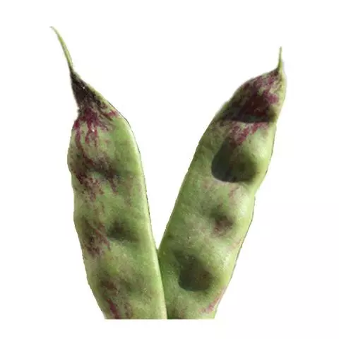 荚果长椭圆形,长5~10cm,内有坚纸质衬皮子房无毛,花柱扁,内面有髯毛。荚果肿胀,长椭圆形,长2.5-10厘米,宽0.7-14厘米,顶端斜急尖,背部近于伸直;种子2-10颗,圆形,青绿色,有皱纹或无,干后变为黄色。花果期4~5月。偶数羽状复叶,顶端卷须为叶卷须,托叶呈卵形。花白色或紫红色、单生或1~3朵排列成总状腋生,花柱内侧有须毛,闭花授粉,花瓣蝴蝶形。