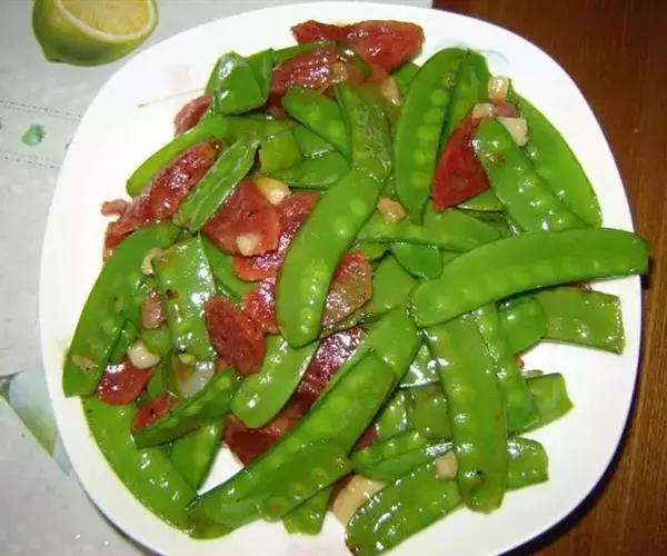 清炒荷兰豆(原料:荷兰豆、红椒、蒜头、盐)、蒜香荷兰豆(原料:荷兰豆、青椒、红椒、蒜、盐、鸡精)、腊肠烧荷兰豆(原料:腊肠、荷兰豆、姜、香芹、红尖椒、盐、鸡精、湿生粉、香油)、荷塘小炒(原料:莲藕、山药、荷兰豆、胡萝卜、水发木耳、盐、鸡精、香油、葱、姜)、培根炒荷兰豆(原料:荷兰豆、培根、蒜瓣、红椒、油、盐、鸡精)、蒜蓉荷兰豆(原料:荷兰豆、蒜、盐、猪油)、荷兰豆肉丝饭(原料:米饭、猪瘦肉、荷兰豆、桃、牛奶、炼乳、橄榄油、盐、味精、生抽、香油)、荷兰豆炒虾仁(原料:荷兰豆、虾仁、黑木耳、淀粉、盐、鸡精、料酒)、荷兰豆炒魔芋(原料:荷兰豆、魔芋、木耳、葱姜、盐、糖、蚝油、鸡精、香油)等。