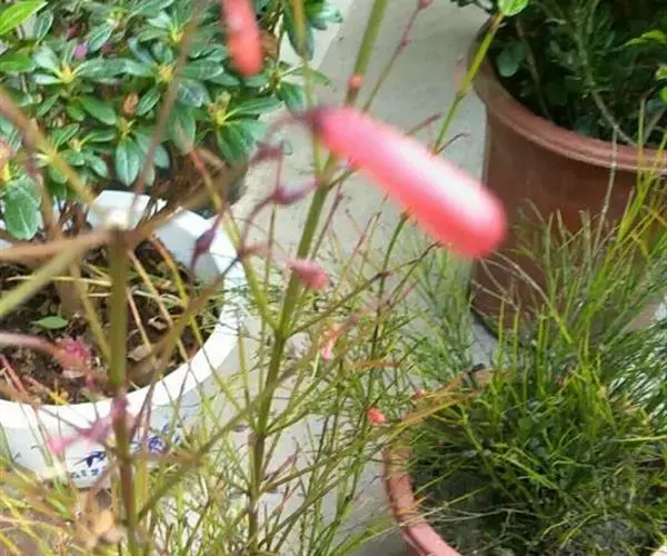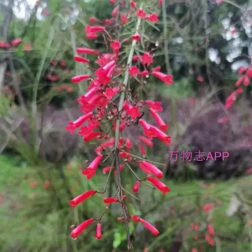 聚伞圆锥花序狭长,小聚伞花序有花1-3朵,总花梗长达3厘米,苞片钻形;花梗长近1厘米;花萼小,长仅2-3毫米,深裂过半,裂片卵状三角形,急尖,覆瓦状排列;花冠长达2厘米,红色,具长筒,不明显唇形,上唇2裂,下唇3裂;雄蕊4枚,内藏,退化雄蕊极小,位于花冠筒基部的后方。蒴果球形,室间开裂。花期长,从5月一直到冬季,只要温度高于8℃,就可开花不断。在温暖适宜的的地方,全年有花。