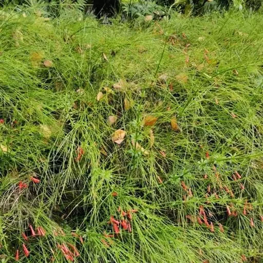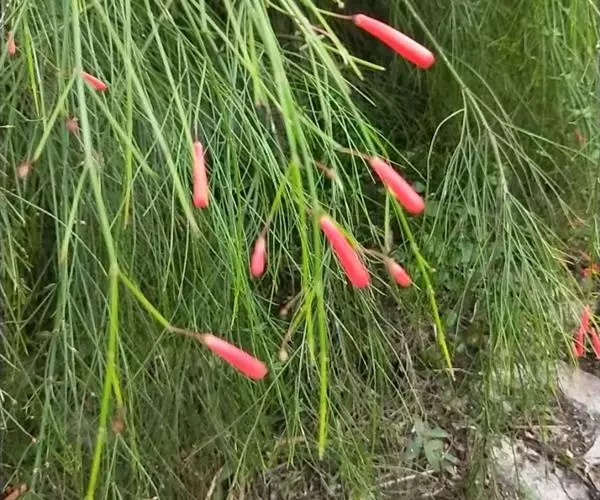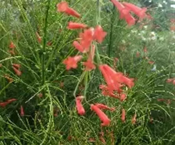 爆仗竹(学名:Russelia equisetiformis Schlecht. et Cham. )是玄参科爆仗竹属植物。直立、木贼状半灌木,高可达1米,全体无毛。茎分枝轮生,细长,具棱。叶轮生,退化为披针形的鳞片。聚伞圆锥花序狭长,总花梗长达3厘米,苞片钻形;花梗长近1厘米;花萼小,深裂过半,裂片卵状三角形,急尖,覆瓦状排列;花冠红色,具长筒,不明显唇形;雄蕊4枚,内藏,退化雄蕊极小,位于花冠筒基部的后方。蒴果球形,室间开裂。