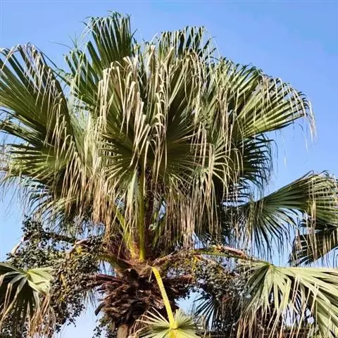 蒲葵 R. Br. ex Mart.),棕榈科蒲葵属木本植物。叶为扇形,两面均为绿色,…