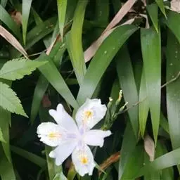 亮叶鸢尾为常绿多年生草本植物。叶面光滑、亮绿色,花茎扁平叶状。原产于巴西。