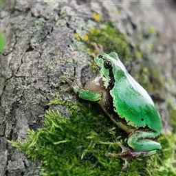 树蛙是树蛙科两栖动物的统称。树蛙体中等或大,一般雄蛙吻端斜尖,雌蛙吻端高钝;舌后端缺刻深,梨骨齿发达,…