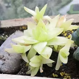 京之华锦是独尾草科瓦苇属的一种植物。也叫凝脂菊,为京之华的斑锦变异品种,植株群生,…