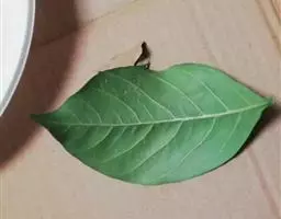 小叶片多破碎,完整者宽披针形,长5-14cm,宽2-6cm,先端渐尖,基部偏斜,边缘有锯齿,上面灰绿色,下面黄绿色或褐色,有盾状腺体,革质。气清香,味淡。 以叶多、色绿、气清香者为佳。