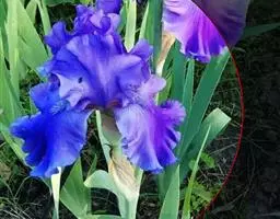 西南鸢尾(学名:Iris bulleyana Dykes):多年生草本。根状茎较粗壮,斜伸,节密集。叶基生,条形,无明显的中脉。花茎中空,光滑,生有2-3片茎生叶。苞片2-3枚,膜质,绿色,边缘略带红褐色,内包含有1-2朵花;花天蓝色,直径6.5-7.5厘米;外花被裂片倒卵形,爪部楔形,具蓝紫色的斑点及条纹,内花被裂片直立,披针形或宽披针形,淡蓝紫色,花盛开时略向外倾。蒴果三棱状柱形,6条肋明显,表面具明显的网纹;种子棕褐色,扁平,半圆形。花期6-7月,果期8-10月。