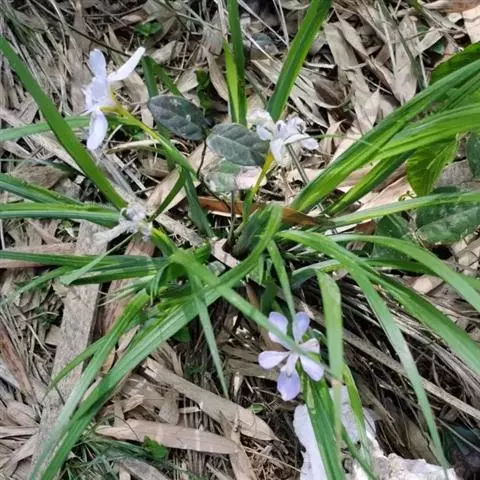 亮叶鸢尾为常绿多年生草本植物。叶面光滑、亮绿色,花茎扁平叶状。原产于巴西。