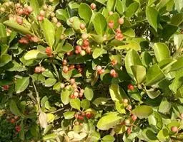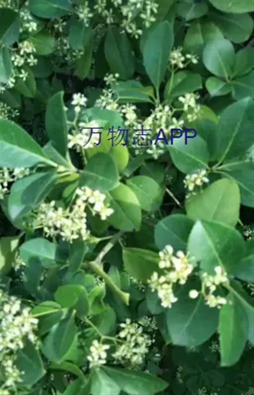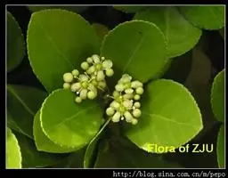 常绿灌木或小乔木,高达8米。 叶光亮革质,倒卵形或窄长椭圆形,长3-6厘米,宽2-3厘米。 聚伞花…