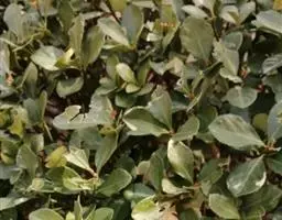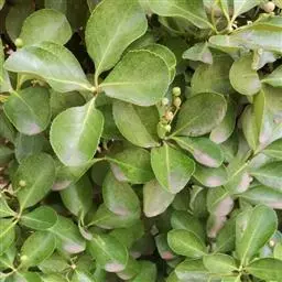 危害大叶黄杨叶片,被害植株叶片表现皱缩畸形,影响生长。白粉病多分布于大叶黄杨的叶正面,少有生长在叶背面的,单个病斑圆形,白色病斑扩大相互愈合之后不规则。