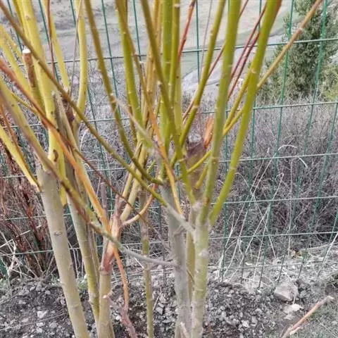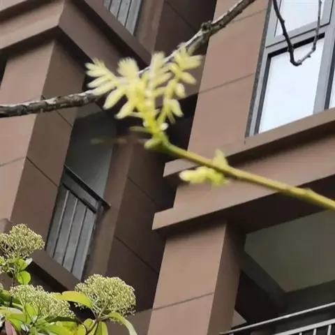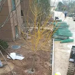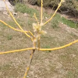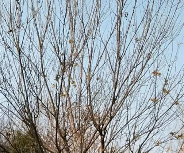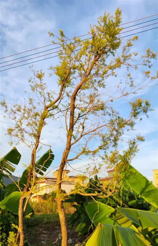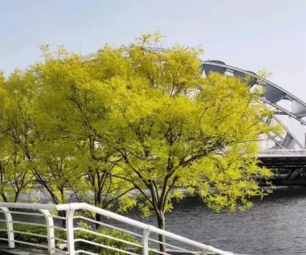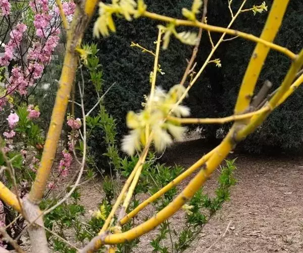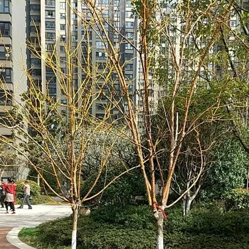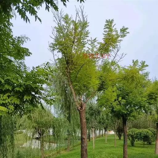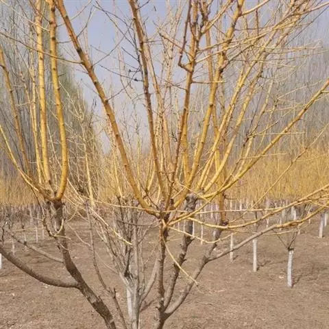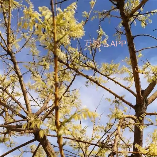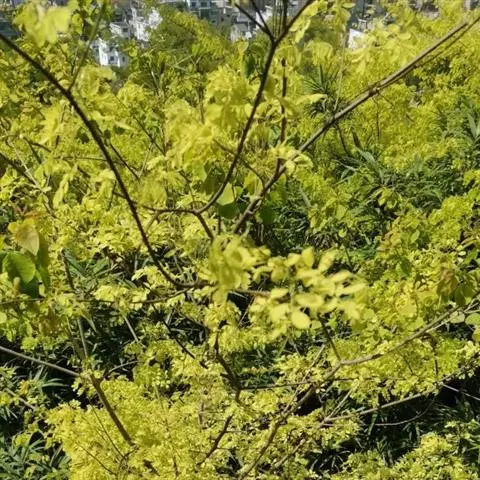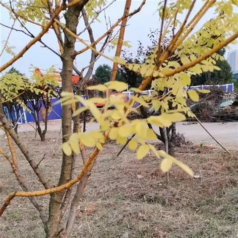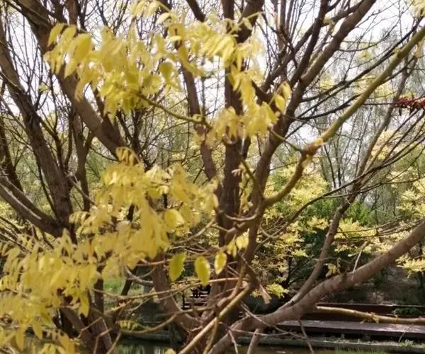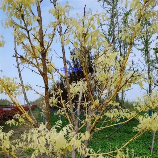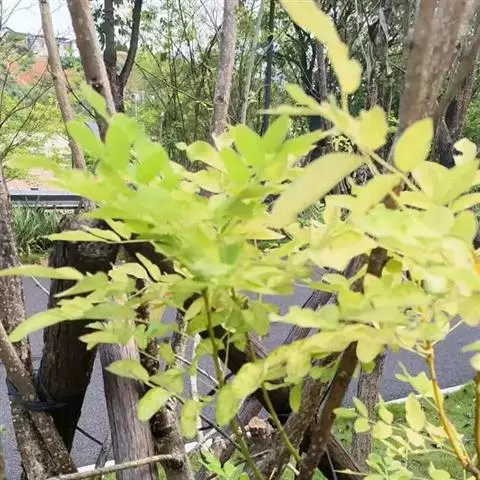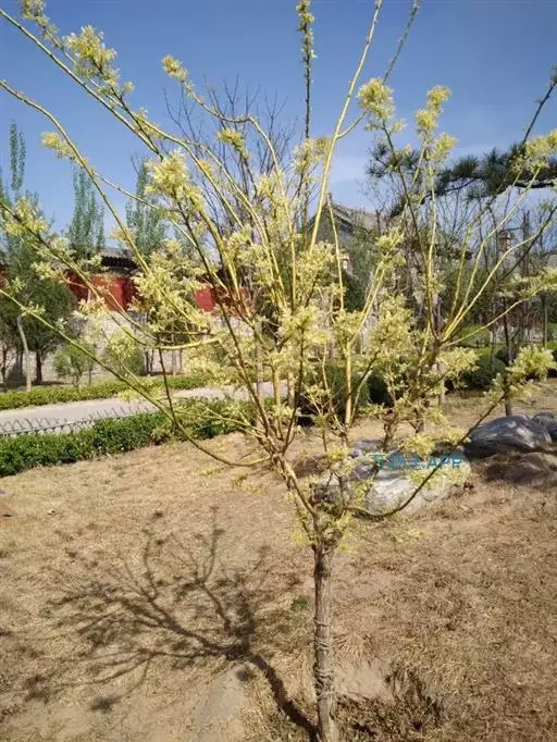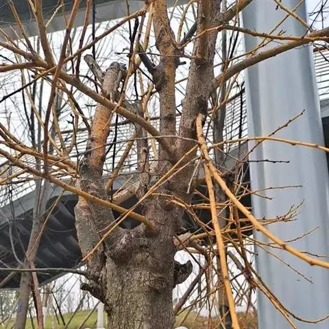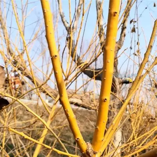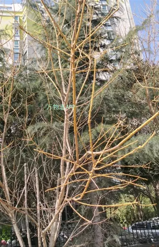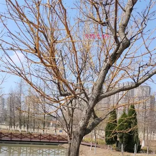 金枝槐最明显可以看到是时间是冬季,因为是落叶乔木,冬季落完叶子,只剩下枝条,枝条呈金黄色。金叶槐春夏秋三季,叶片呈金黄色,枝条为绿色。