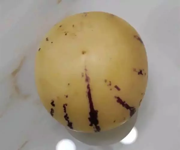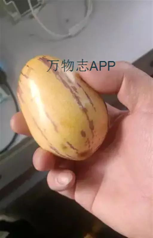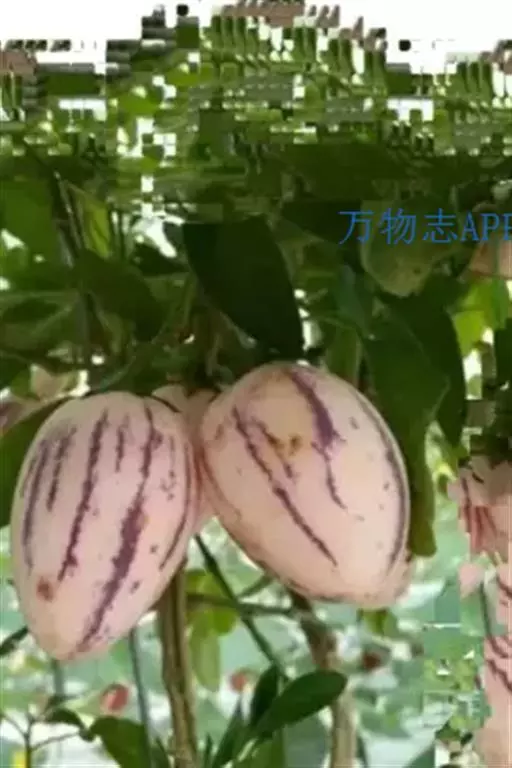 人参果(Pepino Melon,别名:仙果、香艳梨、艳果、草还丹、瓜茄、香艳茄、香瓜梨、香艳梨、香艳芒果、金参果、长寿果、紫香茄)原名为香瓜茄,学名为南美香瓜茄 Pepino Melon, Solanum muricatum Aiton。又名长寿果、凤果、艳果,原产南美洲,属茄科类多年生双子叶草本植物。亦可称仙果、香艳梨、艳果。果实成熟时果皮呈金黄色,外形似人的心脏。其果肉味道独特、脆爽多汁、不酸不涩,和酸角一样,是一种受欢迎的水果。