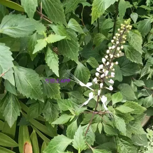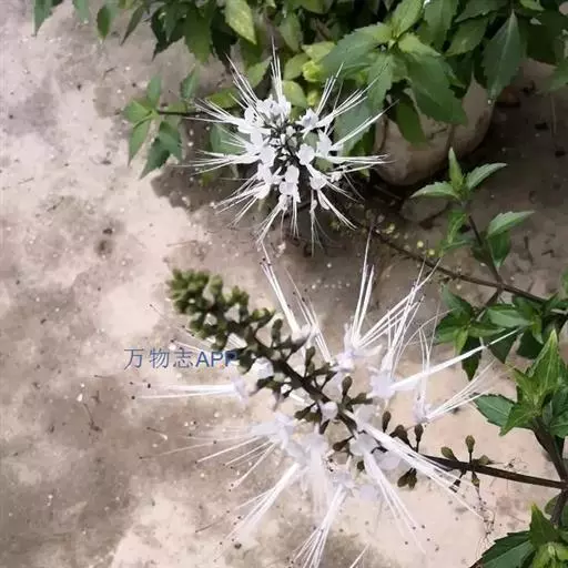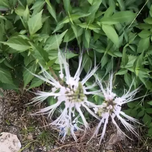 轮伞花序6花,在主茎及侧枝顶端组成具总梗长8-12厘米的总状花序;苞片圆卵形,长约3.5毫米,宽约3毫米,先端骤尖,全缘,具平行的纵向脉,上面无毛,下面密被短柔毛,边缘具小缘毛;花梗长达5毫米,与序轴密被短柔毛。花萼卵珠形,长5-6毫米,宽约2.5毫米,外面被微柔毛及突起的锈色腺点,内面无毛,二唇形,上唇圆形,长宽约2.5毫米,边缘下延至萼筒,下唇具4齿,齿三角形,先端具芒尖,前2齿比侧2齿长一倍,边缘均具短睫毛,果时花萼增大,长达1.1厘米,宽至5毫米,10脉明显,其间网脉清晰可见,上唇明显外反,下唇向前伸。花冠浅紫或白色,外面被微柔毛,在上唇上疏布锈色腺点,内面在冠筒下部疏被微柔毛,冠筒狭管状,长9-19毫米,近等大,直径约1毫米,冠檐大,二唇形,上唇大,外反,直径约6毫米,3裂,中裂片较大,先端微缺,下唇直伸,长圆形,长约5毫米,宽约2.5毫米,微凹。雄蕊4,超出花冠2-4厘米,前对略长,花丝长丝状,无齿,花药小,药室叉开。花柱长长地伸出,先端棒状头形,2浅裂。花盘前方呈指状膨大。小坚果卵形,长约2毫米,宽约1.6毫米,深褐色,具皱纹。花、果期5-11月。