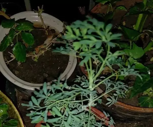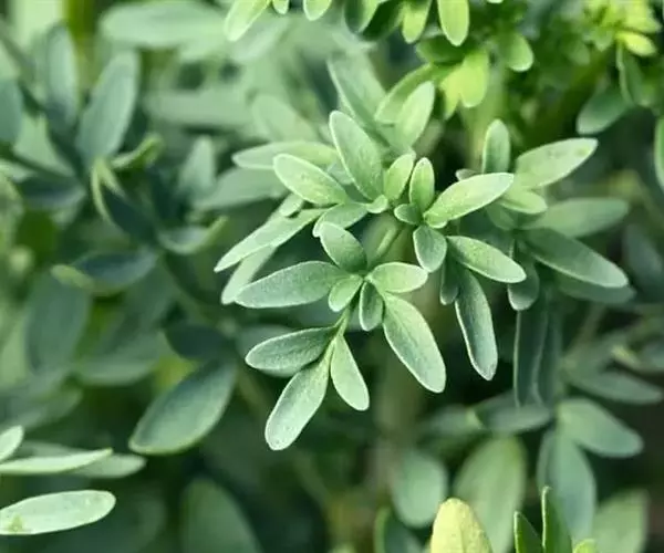 芸香 茎基部木质的多年生草本, 落地栽种之植株高达1米,各部有浓烈特殊气味。叶二至三回羽状复叶,长6-12厘米,末回小羽裂片短匙形或狭长圆形,长5-30毫米,宽2-5毫米,灰绿或带蓝绿色。