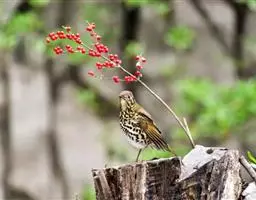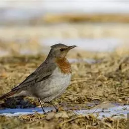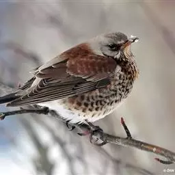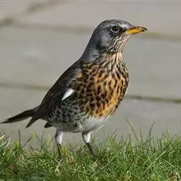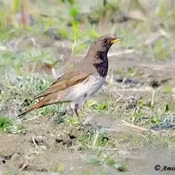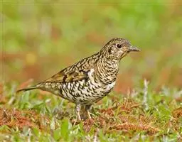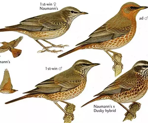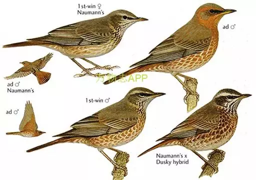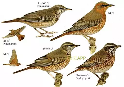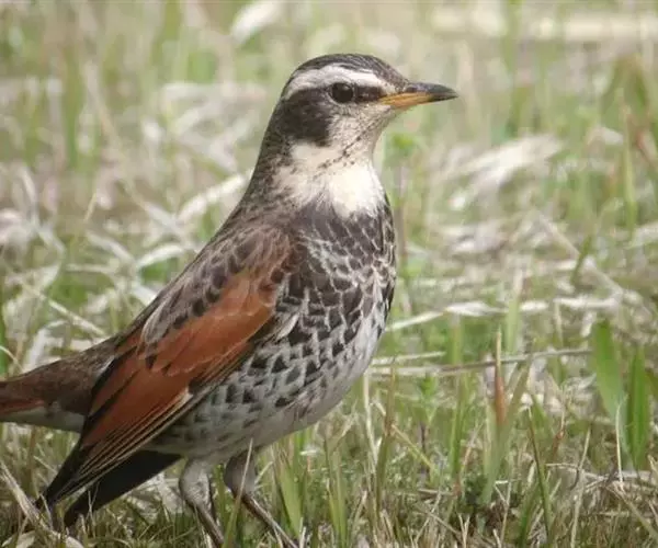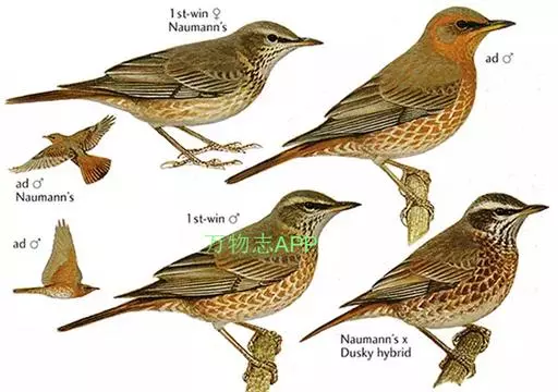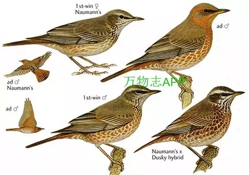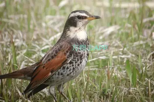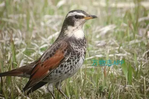 斑鸫(学名:Turdus naumanni):中型鸟类,体长20-24厘米。有2亚种,其羽色变化较大,其中北方亚种体色较暗,上体从头至尾暗橄榄褐色杂有黑色;下体白色,喉、颈侧、两胁和胸具黑色斑点,有时在胸部密集成横带;两翅和尾黑褐色,翅上覆羽和内侧飞羽具宽的棕色羽缘;眉纹白色,翅下覆羽和腋羽辉棕色。指名亚种体色较淡,上体灰褐色,眉纹淡棕红色,腰和尾上覆羽有时具栗斑或为棕红色,翅黑色,外翈羽缘棕白或棕红色,尾基部和外侧尾棕红;颏、喉、胸和两胁栗色,具白色羽缘,喉侧具黑色斑点。