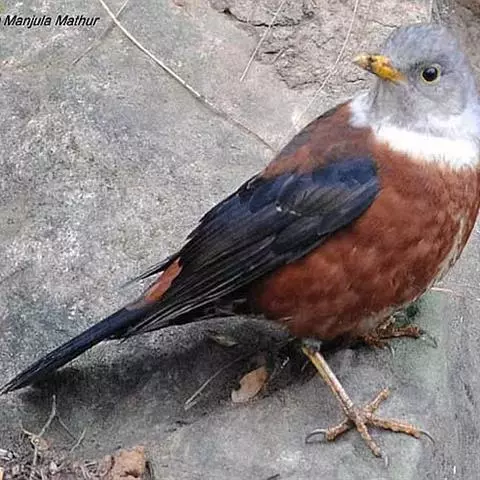 灰头鸫:中型鸟类,体长23-27厘米。整个头、颈和上胸褐灰色,两翅和尾黑色,上、下体羽栗棕色。…