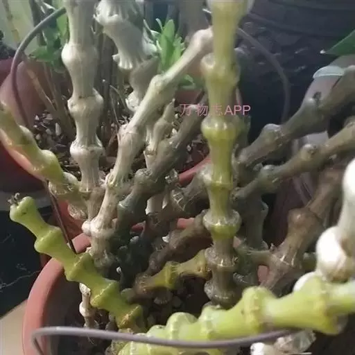 短棒石斛:茎肉质状,近扁的纺锤形,不分枝,具多数钝的纵条棱和少数节间。叶2-4枚近茎端着生,革质,…