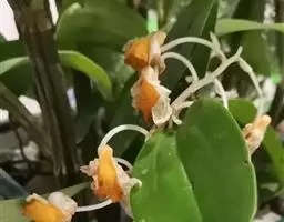 重唇石斛:茎下垂,圆柱形或有时从基部上方逐渐变粗,具少数至多数节。叶薄革质,狭长圆形或长圆状披针形。…
