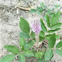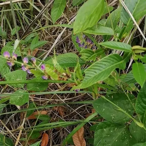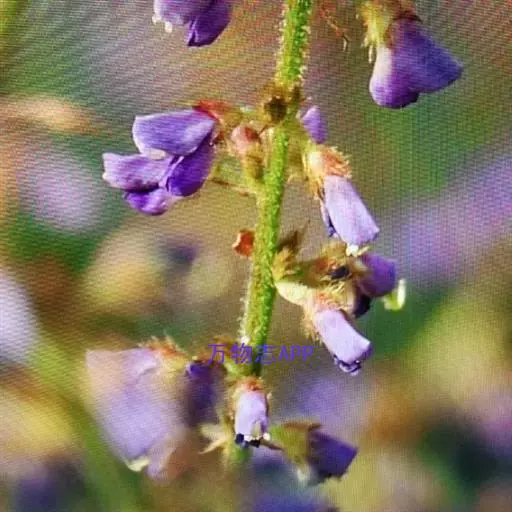 灌木或亚灌木,茎直立,高1-2米。幼枝三棱形,棱上被疏短硬毛,老时渐变无。叶仅具单小叶;托叶披针形,长1.3-2厘米,有条纹;叶柄长1-3厘米,两侧有宽翅,翅宽4-8毫米,与叶同质;小叶纸质,狭披针形至卵状披针形,长5.8-13厘米,宽1.1-3.5厘米,先端急尖,基部圆形或浅心形,上面无毛,下面中脉或侧脉疏被短柔毛,侧脉每边8-14条,不达叶缘,叶下面网脉明显。总状花序顶生和腋生,长15-30厘米,被贴伏丝状毛和小钩状毛;花2-3朵簇生于每节上;苞片钻形或狭三角形,长5-10毫米;花梗开花时长2-6毫米,结果时延长到5-8毫米,被小钩状毛和丝状毛;花萼宽钟形,长约3毫米,萼筒长1.5毫米,上部裂片三角形,先端微2裂或有时全缘,侧裂片披针形,下部裂片线形;花冠淡紫色或蓝紫色,长5-6毫米,伸出萼外,旗瓣近圆形,先端凹入,翼瓣倒卵形,基部具耳,龙骨瓣镰刀形,弯曲,瓣柄与瓣片近等长;雄蕊二体;子房被毛,有5-8胚珠,花柱无毛。荚果长2-5厘米,宽5毫米,全部密被黄色或白色糙伏毛,无网脉,腹缝线直,背缝线稍缢缩,有荚节5-8,荚节近方形;种子宽椭圆形或椭圆形,长2-3毫米,宽1.5-2.5毫米.花期6-10月,果期10-12月。