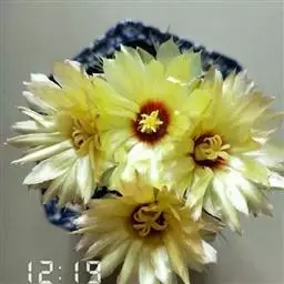 花白色,巨大子房下位,花长约30厘米,故又有霸王花之称。花萼管状,宽约3厘米,带绿色(有时淡紫色)的裂片;具长3-8厘米的鳞片;花瓣宽阔,纯白色,直立,倒披针形,全缘。雄蕊多而细长,多达700-960条,与花柱等长或较短。花药乳黄色,花丝白色;花柱粗,0.7-0.8厘米,乳黄色;雌蕊柱头裂片多达24枚。