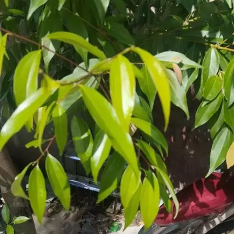 狭叶阴香与阴香原变型不同在于:叶线形至线状披针形或披针形,长(3.8)4.5-12(15)厘米,宽(0.7)1-2(4)厘米,总梗常十分纤细;花梗有时长达10(12)毫米。