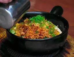 (4)加水适量,盖上盖子慢火焖10分钟,再用大火把多余的水蒸发掉即成。