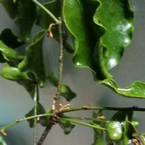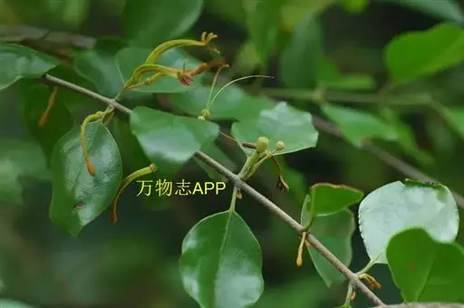灌木,高0.5-1米;嫩枝、叶密被褐色或红褐色星状毛,有时具散生叠生星状毛,小枝黑色,无毛,具散生皮孔。叶近对生或互生,革质,卵形、长卵形或椭圆形,长5-8厘米,宽3-4.5厘米,顶端圆钝,基部近圆形,上面无毛,下面被绒毛;侧脉4-5对,在叶上面明显;叶柄长6-12毫米,无毛。
