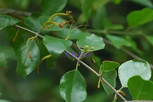 桑寄生(学名:Taxillus sutchuenensis (Lecomte) Danser),别称桃树寄生,苦楝寄生等。嫩枝、叶密被褐色或红褐色星状毛,有时具散生叠生星状毛,小枝黑色,无毛,具散生皮孔。产于云南、四川、甘肃、陕西、山西、河南、贵州、湖北、湖南等地。有祛风湿,益肝肾,强筋骨,安胎的功效。