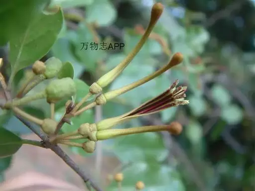 总状花序,1-3个生于小枝已落叶腋部或叶腋,具花(2-)3-4(-5)朵,密集呈伞形,花序和花均密被褐色星状毛,总花梗和花序轴共长1-2(-3)毫米;花梗长2-3毫米;苞片卵状三角形,长约1毫米;花红色,花托椭圆状,长2-3毫米;副萼环状,具4齿;花冠花蕾时管状,长2.2-2.8厘米,稍弯,下半部膨胀,顶部椭圆状,裂片4枚,披针形,长6-9毫米,反折,开花后毛变稀疏;花丝长约2毫米,花约长3-4毫米,药室常具横隔;花柱线状,柱头圆锥状。