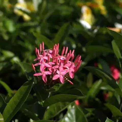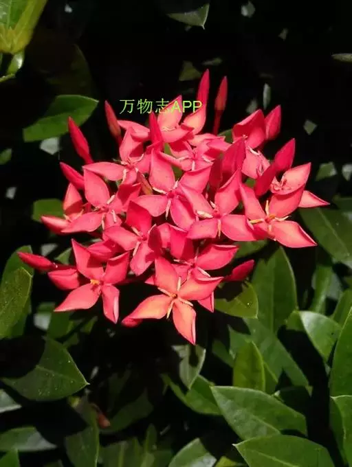 龙船花(Ixora chinensis Lam.)又名英丹、仙丹花、百日红,为茜草科、龙船花属植物。植株低矮,花叶秀美,花色丰富,有红、橙、黄、白、双色等。株形美观,开花密集,花色丰富,是重要的盆栽木本花卉,是缅甸的国花。在中国广西省南部,人们习惯称它为水绣球。龙船花花期较长,每年3-12月均可开花。