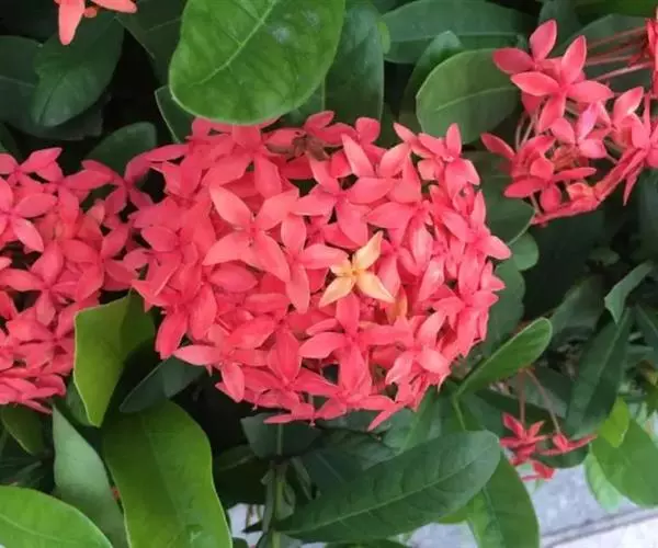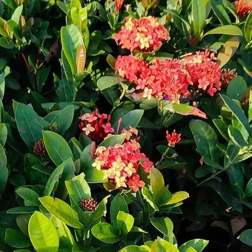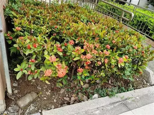 株型较高大,枝条相对疏松的龙船花品种,如大王龙船花、白龙船花等,它们一般花朵硕大,美艳无比,单植、丛植或群植都自成一景,3或5丛成群,既相对独立,又浑然一体。或与其它花木配植,增加空间变化和层次感。