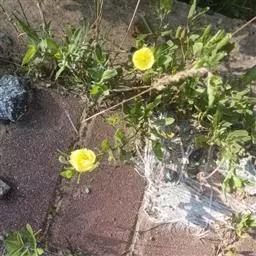 黄花月见草(Oenothera glazioviana Mich.) 柳叶菜科、月见草属直立二年生至多年生草本,具粗大主根;茎高70-150厘米,粗6-20毫米,不分枝或分枝,常密被曲柔毛与疏生伸展长毛(毛基红色疱状),在茎枝上部常密混生短腺毛。基生叶莲座状,倒披针形,先端锐尖或稍钝,基部渐狭并下延为翅,边缘自下向上有远离的浅波状齿,白色或红色,上部深绿色至亮绿色,两面被曲柔毛与长毛;茎生叶螺旋状互生,狭椭圆形至披针形,自下向上变小,。种子棱形,褐色,具棱角,各面具不整齐洼点,有约一半败育。花期5-10月,果期8-12月。