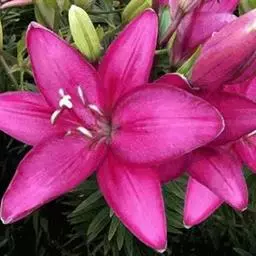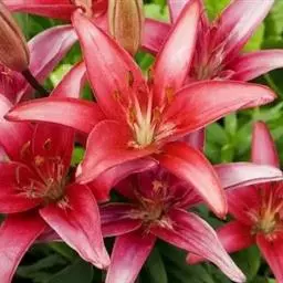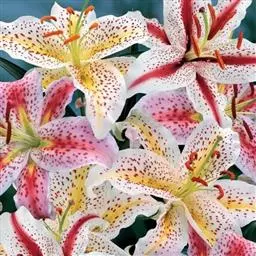 亚洲百合,百合科百合属植物。多年生草本,高30~60厘米。鳞茎卵球形。总状花序,花漏斗状,朝上开放,…
