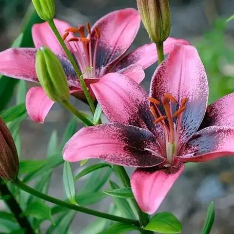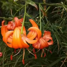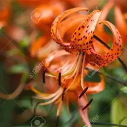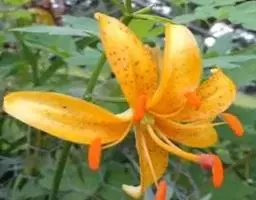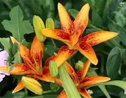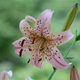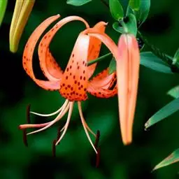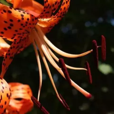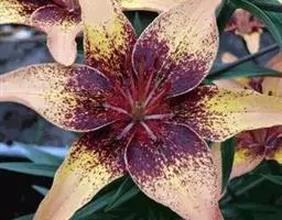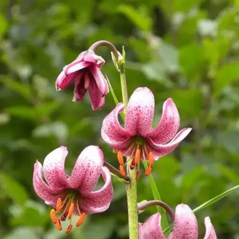 无性繁殖是有斑百合的主要繁殖手段,秋季待地上部分枯萎后,起出三年生种球,选取成熟的大鳞茎,将2-4层鳞片用利刃割下,用0.2%高锰酸钾溶液消毒20分钟后用清水浸泡20分钟,斜插于预先做好的畦面上(作畦方法与播种法相同),注意使鳞片内侧面微朝上,株行距5厘米×20厘米,深5厘米,第二年春节即可出苗。至秋季即可移栽,在种苗生长期间,有性繁殖同样,也需进行60%的遮荫。