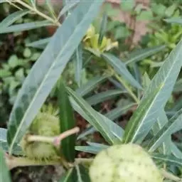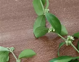 条圆柱形,嫩枝、叶具毛茸,茎枝多木化。单叶对生,叶片椭圆形,长可达12cm,先端渐尖,基部楔形,全缘,叶脉于下表面微突起。质较厚。有时可见花或果实。花淡黄棕色或类白色,高脚碟状。果实纺锤形,皱缩,长3.5-6cm,直径约3cm,橙黄色,顶端具短尖。气微,味微苦。