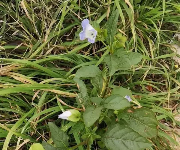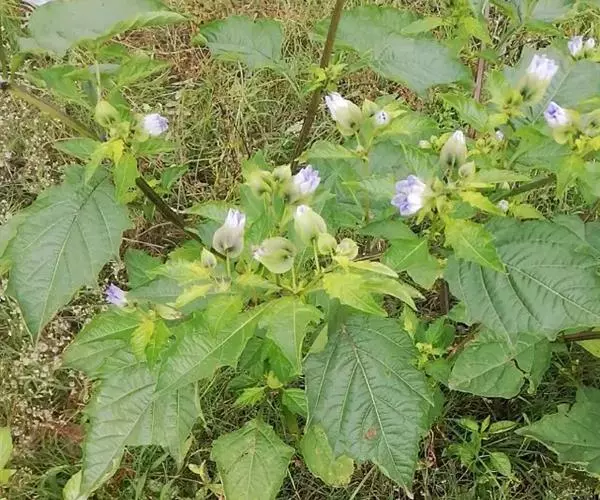 假酸浆(学名:Nicandra physalodes (Linn.) Gaertn.)是茄科、假酸浆属一年生直立草本植物,多分枝。茎直立,有棱条,无毛,高可达1.5米,叶片卵形或椭圆形,草质,顶端急尖或短渐尖,基部楔形,两面有稀疏毛;花单生于枝腋而与叶对生,花萼5深裂,裂片顶端尖锐,基部心脏状箭形,花冠钟状,浅蓝色,浆果球状,黄色。种子淡褐色,夏秋季开花结果。
