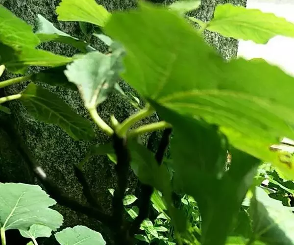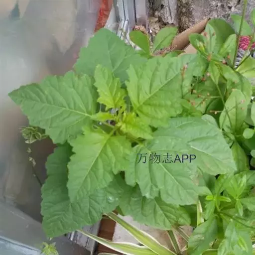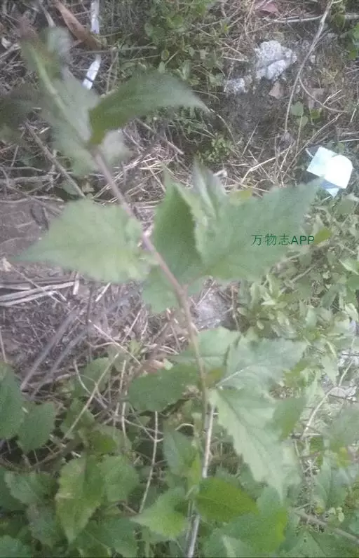 叶卵形或椭圆形,草质,长4-12厘米,宽2-8厘米,顶端急尖或短渐尖,基部楔形,边缘有具圆缺的粗齿或浅裂,两面有稀疏毛;叶柄长约为叶片长的1/3-1/4。