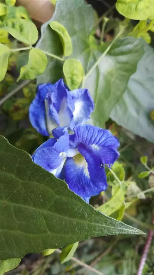 花单生于枝腋而与叶对生,通常具较叶柄长的花梗,俯垂;花萼5深裂,裂片顶端尖锐,基部心脏状箭形,有2尖锐的耳片,果时包围果实,直径2.5-4厘米;花冠钟状,浅蓝色,直径达4厘米,檐部有折襞,5浅裂。
