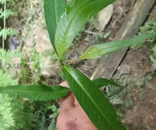叶披针形或宽披针形,长5-15厘米,宽1-3厘米,顶端渐尖或急尖,基部楔形,上面绿色,常有一个大的黑褐色新月形斑点,两面沿中脉被短硬伏毛,全缘,边缘具粗缘毛;叶柄短,具短硬伏毛;托叶鞘筒状,长1.5-3厘米,膜质,淡褐色,无毛,具多数脉,顶端截形,无缘毛,稀具短缘毛。