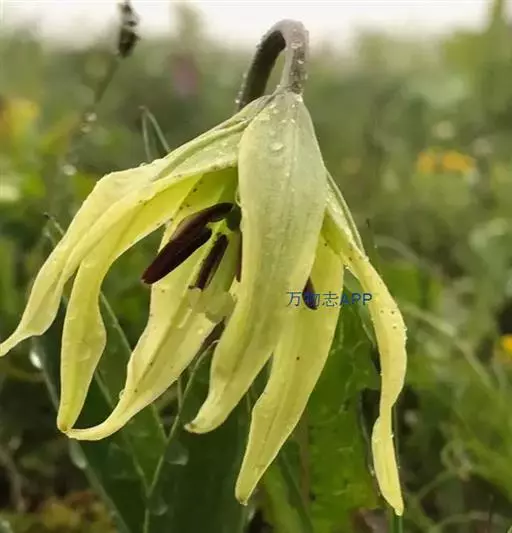 花序单生于叶腋内或叶腋外,有花2-5朵;花大,长约8厘米,黄绿色,芳香,倒垂;总花梗长2-5毫米,被短柔毛;花梗长1-4厘米,被短柔毛,有鳞片状苞片;萼片卵圆形,外反,绿色,两面被短柔毛;花瓣内外轮近等大,线形或线状披针形,长5-8厘米,宽8-16毫米,初时两面被短柔毛,老渐几无毛;雄蕊线状倒披针形,基部窄,上部宽,药隔顶端急尖,被短柔毛;心皮长圆形,被疏微毛,老渐无毛,柱头近头状羽裂。成熟心皮10-12,有长柄,无毛,成熟的果近圆球状或卵状,长约1.5厘米,直径约1厘米,黑色。花期4-8月,果期12月-翌年3月。