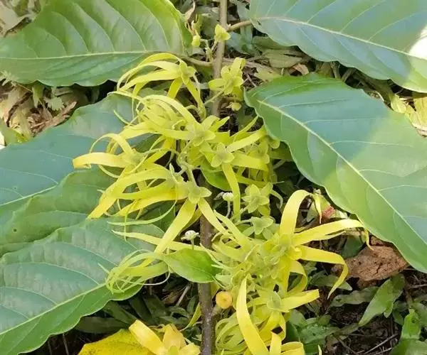 小依兰(Cananga odorata var. fruticosa (Craib) Sincl.)与原变种的不同在于该变种的性状为灌木,植株矮小,高1-2米;花的香气较淡等不同。花期5-8月。原产于泰国、印度尼西亚和马来西亚。模式标本采自泰国。中国栽培于广东、云南。花有浓郁的香气,可提制高级香精油,称“依兰依兰”油及“加拿楷”油,是一种用途很广的重要的日用化工原料。