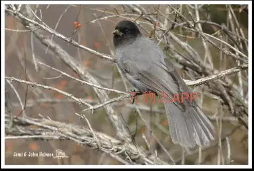 黑头噪鸦(图2) 黑头噪鸦身长约30厘米。雄性成鸟:额、头顶、头侧、颈侧、眼先、耳羽及鼻须概黑色;新采标本嘴色向后至上颈色较暗呈不甚明显的半环状斑;肩、背、腰及尾上覆羽黑褐色沾蓝或乌灰色沾褐、最长的尾上覆羽沾棕褐,翅羽黑褐色,羽轴辉黑(江达采得一雄鸟一侧初级覆羽第1枚纯白色,另一侧具白色缘;青海斑玛采得一雄鸟,初级覆羽一侧有1枚为白色,另一侧有2枚为白色)。尾羽黑褐色,中央尾羽具隐斑,外侧尾羽隐斑不著且愈向外侧隐斑愈少。颏、喉黑色或暗烟灰色;胸、腹、胁辉黑褐色(狐化标本乌灰色沾褐);尾下覆羽浅灰沾淡黄。覆腿羽黑色;腋羽烟灰色。